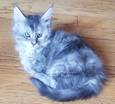Female 3 Purple Collar Blue Tabby with White Reserved Super playful, she loves to chase a feather and laser light. |