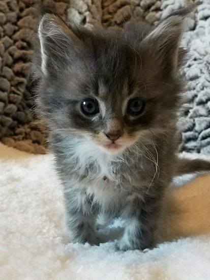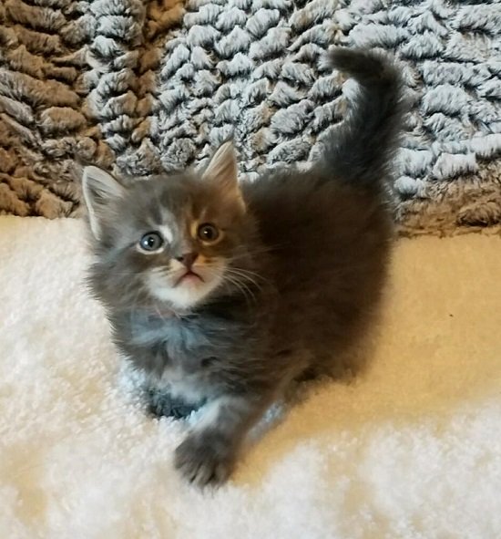 We call this little man lightning. Yes, it started because of the streak on his head, but he is the fastest of all the kittens too. He is out in the middle of the room while the rest are still finding their way. He is super affectionate and purrs so big every time you touch him.