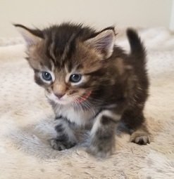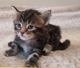 This Male Kitten was the largest one of the litter. He has a big personality to match. His markings are spectacular. He is going to be a looker for sure. His long fur is so soft and amazing. |