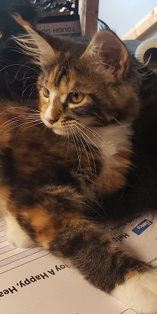 "Ettie" is the best mom ever. She is so chill and so committed to caring for her babies. She snuggles and cleans and loves on the babies. We love having her as a mom. She is so attentive to all the kittens from the other mom's and their kittens too. She is also super affectionate to all of us too. She throws the most beautiful kittens from reds, to silver classics, blacks, solid blues and possibly black smokes. With Eremeya as her mom and Hunter as her Dad she throws some very large kittens.