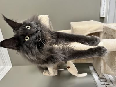 Zeus is our 2 year old sweet and the most loving cat you’ll ever meet! He is the love of our life. I did not know what I was missing not ever owning a Maine coon. But I did know once I did research that the breed is what I wanted and boy am I glad we for him. He loves to fetch his toys, chases our smaller boys, loves on them like no other. He is the best!!!