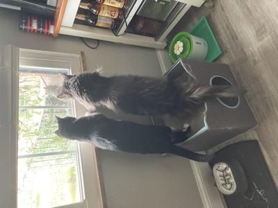 Sayomi is still amazing! We love her! She has a little bother (tuxedo cat) that she will snuggle and play with. We got Sayomi after she retired, and we like to say he is her last baby, since he was such a small kitten when we got him. We watched her teach him how to play! She’s so smart! She’s learning new words like “snack” and “outside”. She loves going outside and watching the birds.